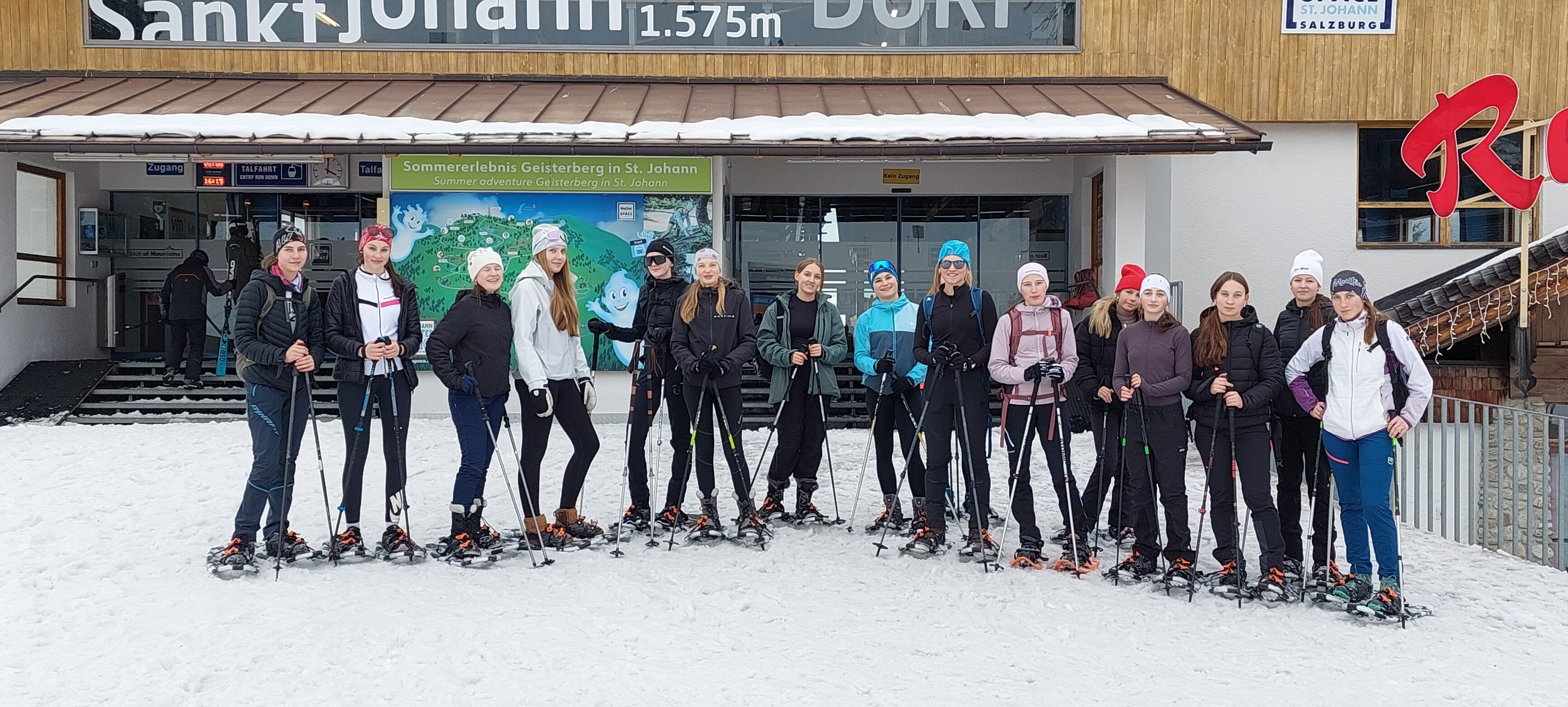 Die Schülerinnen des 2. Jahrgangs des Elisabethinums aus dem Ausbildungszweig Well & Active durften ein besonderes Winterabenteuer erleben. Im Rahmen des gleichnamigen Unterrichtsfachs machte sich die Klasse 2BHL auf zu einer Schneeschuhwanderung entlang des Winterwanderwegs im Alpendorf in St. Johann im Pongau – mitten durch eine tief verschneite Berglandschaft.